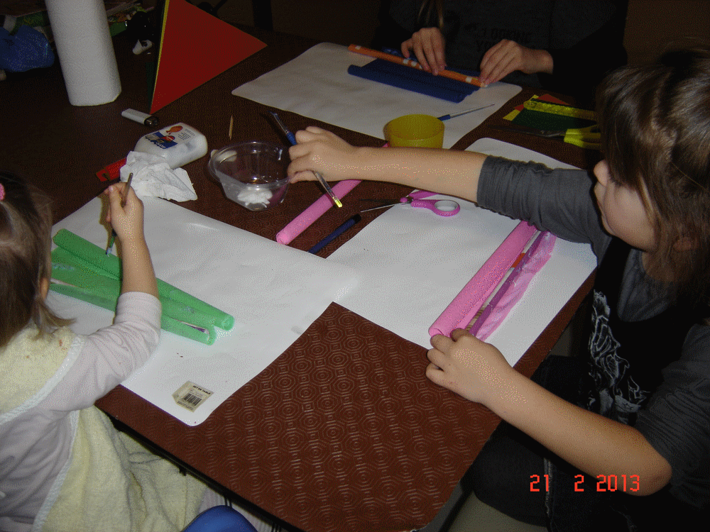 RechercherphotoSi vous n'avez pas de baguette en bois vous pouvez, comme nous, roulez quelques feuilles de prospectus et de les recouvrir avec du papier crépon